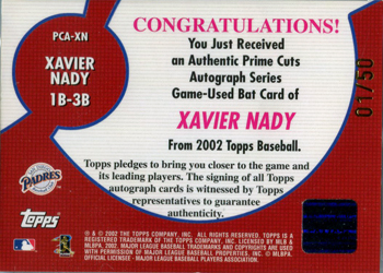 ![]() 2002 Topps Prime Cuts Autograph Relics #PCA-XN 01/50 (back) |