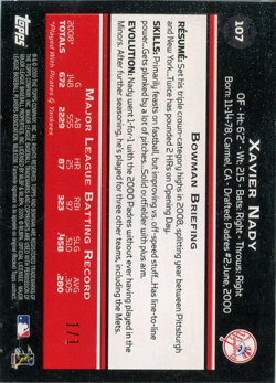 ![]() 2009 Bowman Red #107 1/1 (back) |
